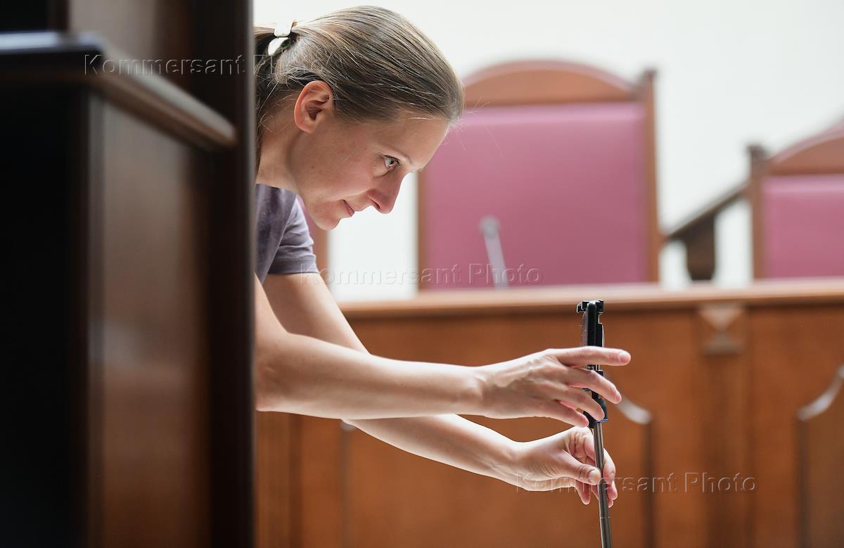 Журналистка радиостанции "Эхо Москвы" Светлана Прокопьева во время заседания Псковского городского суда.
