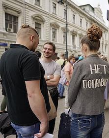 Участники акции движения "Левый фронт" против внесения поправок в Конституцию России