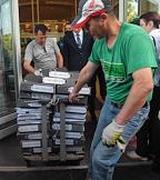 Рассмотрение апелляционной жалобы на приговор футболистам Павлу Мамаеву и Александру Кокорину в Московском городском суде. Тележка с папками с документами.