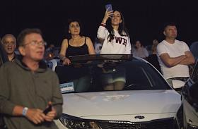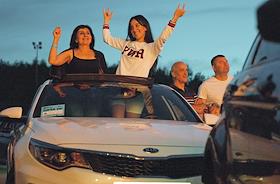 Автомобильный музыкальный фестиваль Drive Live в парке "Яхрома". Зрители в автомобилях во время концерта.