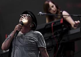 Автомобильный музыкальный фестиваль Drive Live в парке "Яхрома". Музыкант Гарик Сукачев (справа) во время концерта.