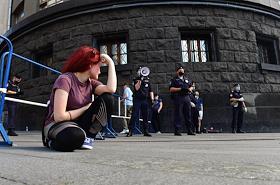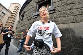 Пикеты у здания ФСБ России в поддержку советника гендиректора "Роскосмоса", бывшего журналиста Издательского дома "Коммерсантъ" Ивана Сафронова, задержанного по подозрению в госизмене. Журналистка Алина Дидковская во время пикетов.