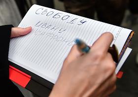 Пикеты у здания ФСБ России в поддержку советника гендиректора "Роскосмоса", бывшего журналиста Издательского дома "Коммерсантъ" Ивана Сафронова, задержанного по подозрению в госизмене. Обозреватель ИД "Коммерсант" Марианна Беленькая во время пикетов.