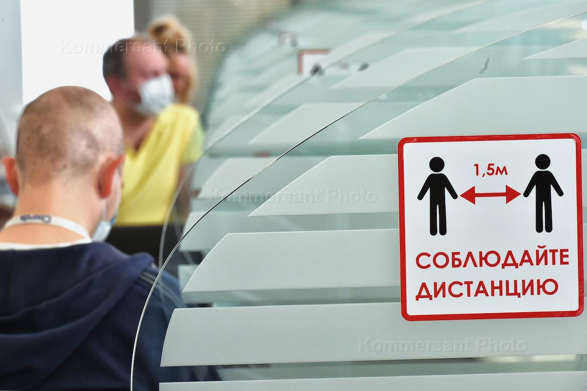 Работа отделения ПАО "Совкомбанк". Наклейка "соблюдайте дистанцию" на разделяющих перегородках для клиентов банка.