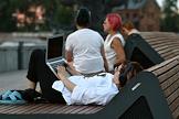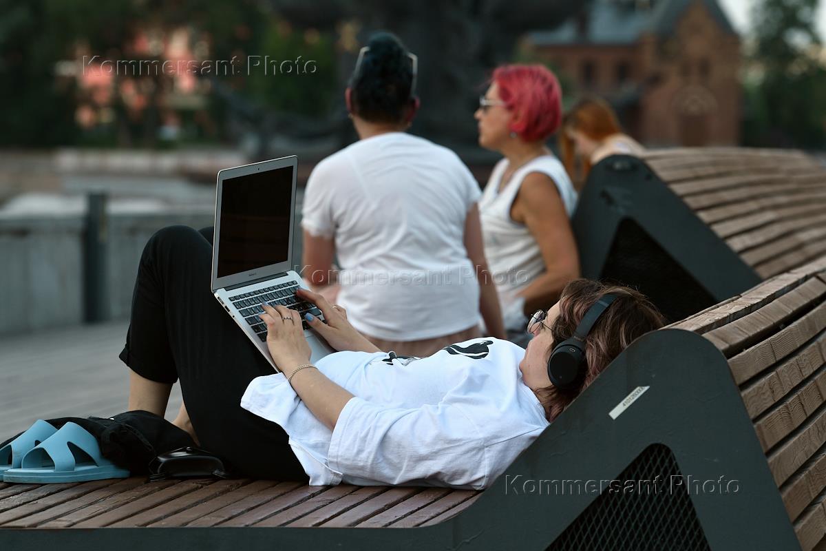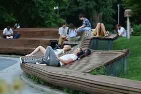 Жанровая фотография. Жара в Москве. Отдыхающие на лавочках в парке Горького.
