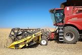 Уборка урожая озимой пшеницы. Комбайн в поле во время уборочных работ.