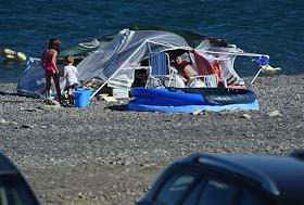 "Дикий отдых" в Крыму. Отдыхающие в палатке на берегу моря.
