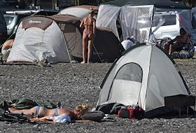 "Дикий отдых" в Крыму. Отдыхающие на пляже.