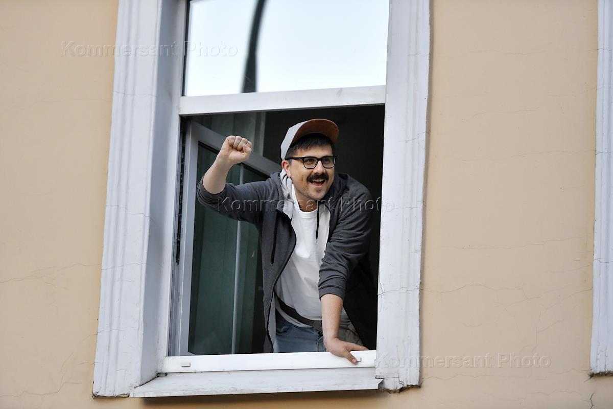 Ситуация у редакции "МБХ медиа". Главный редактор "МБХ медиа" Вероника Куцылло в окне здания.