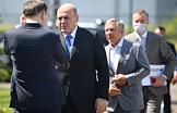 Рабочая поездка председателя правительства России Михаила Мишустина в Елабугу. Слева направо: генеральный директор госкорпорации "Росатом" Алексей Лихачев, председатель правительства России Михаил Мишустин и президент республики Татарстан Рустам Минниханов во время посещения предприятия "Алабуга-Волокно" на территории особой экономической зоны (ОЭЗ) "Алабуга".