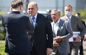 Рабочая поездка председателя правительства России Михаила Мишустина в Елабугу. Председатель правительства России Михаил Мишустин во время посещения предприятия "Алабуга-Волокно" на территории особой экономической зоны (ОЭЗ) "Алабуга".