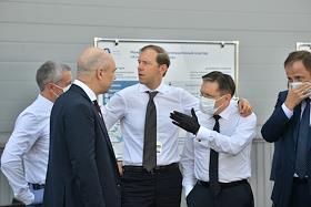 Рабочая поездка председателя правительства России Михаила Мишустина в Елабугу. Министр промышленности и торговли России Денис Мантуров (слева) и генеральный директор госкорпорации "Росатом" Алексей Лихачев (справа) во время посещения предприятия "Алабуга-Волокно" на территории особой экономической зоны (ОЭЗ) "Алабуга".