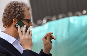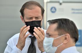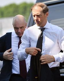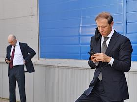 Рабочая поездка председателя правительства России Михаила Мишустина в Елабугу. Министр промышленности и торговли России Денис Мантуров отвечает на звонок по WhatsApp секретаря Генсовета партии "Единая Россия" Андрея Турчака во время посещения предприятия "Алабуга-Волокно" на территории особой экономической зоны (ОЭЗ) "Алабуга".
