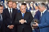 Рабочая поездка председателя правительства России Михаила Мишустина в Елабугу. Слева направо: председатель правительства России Михаил Мишустин, генеральный директор госкорпорации "Росатом" Алексей Лихачев, министр промышленности и торговли России денис Мантуров, полномочный представитель президента в Приволжском федеральном округе Игорь Комаров, заместитель председателя правительства России Марат Хуснуллин и президент республики Татарстан Рустам Минниханов во время посещения предприятия "Алабуга-Волокно" на территории особой экономической зоны (ОЭЗ) "Алабуга".