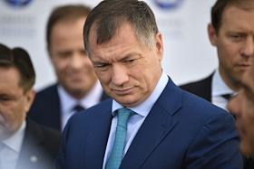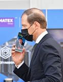 Рабочая поездка председателя правительства России Михаила Мишустина в Елабугу. Министр промышленности и торговли России Денис Мантуров отвечает на звонок по WhatsApp секретаря Генсовета партии "Единая Россия" Андрея Турчака во время посещения предприятия "Алабуга-Волокно" на территории особой экономической зоны (ОЭЗ) "Алабуга".