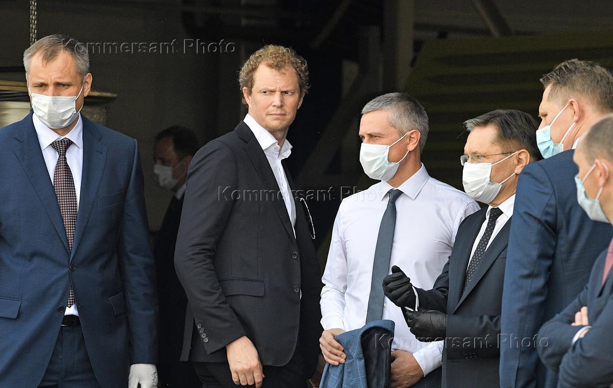 Рабочая поездка председателя правительства России Михаила Мишустина в Елабугу. Руководитель Федеральной налоговой службы России Даниил Егоров (второй слева), генеральный директор компании Umatex Александр Тюнин (в центре) и генеральный директор госкорпорации "Росатом" Алексей Лихачев (четвертый слева) во время посещения предприятия "Алабуга-Волокно" на территории особой экономической зоны (ОЭЗ) "Алабуга".