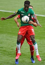 Тинькофф Российская Премьер-Лига (РПЛ). Чемпионат России по футболу 2019/2020. 28-й тур. Матч между командами "Локомотив" (Москва) и "Уфа" (Уфа) на стадионе "РЖД Арена". Игрок команды "Уфа" Андрей Козлов во время матча.