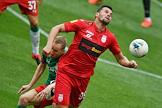 Тинькофф Российская Премьер-Лига (РПЛ). Чемпионат России по футболу 2019/2020. 28-й тур. Матч между командами "Локомотив" (Москва) и "Уфа" (Уфа) на стадионе "РЖД Арена". Игрок команды "Локомотив" Алексей Миранчук перед началом матча.