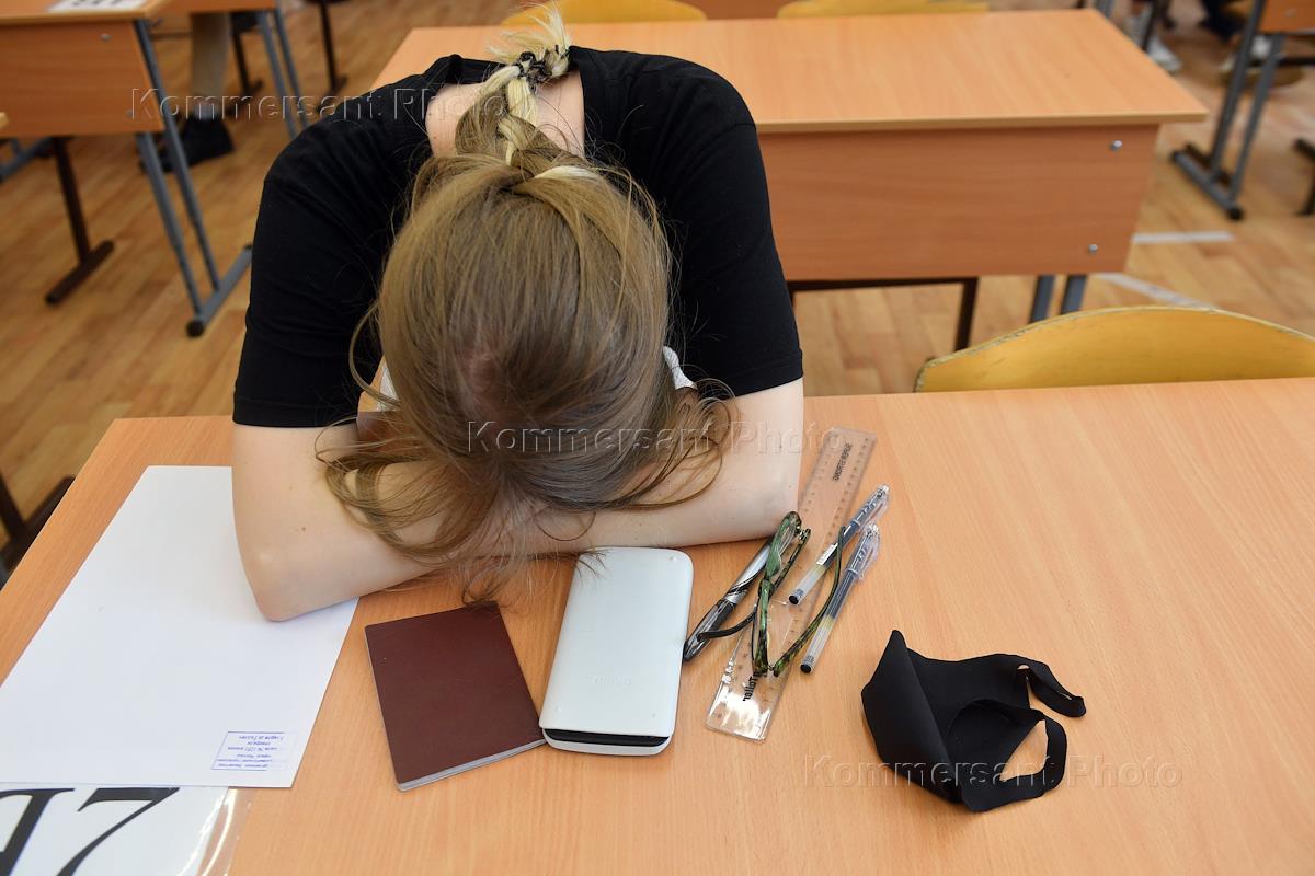 Сдача Единого государственного экзамена (ЕГЭ) по истории в школе № 1251. Школьники во время экзамена.
