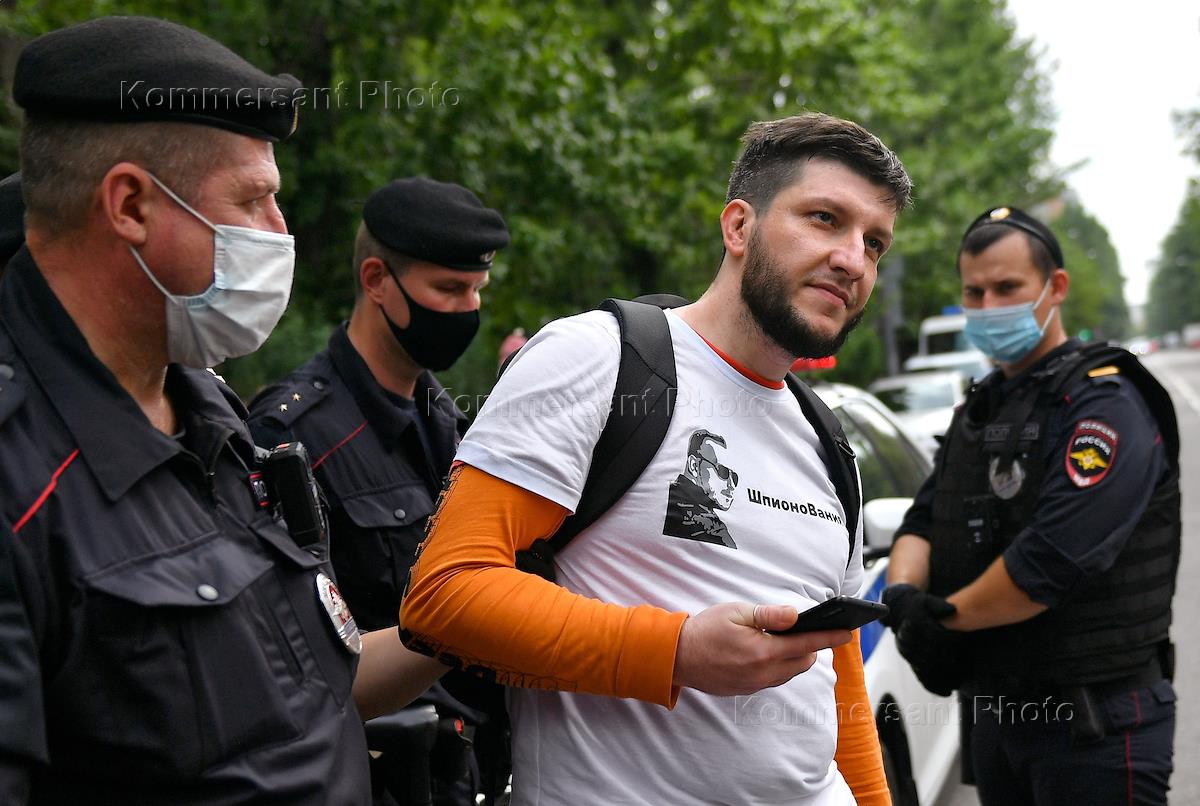 Пикеты в поддержку советника главы "Роскосмоса", бывшего журналиста газеты "Коммерсантъ" Ивана Сафронова у СИЗО "Лефортово". Корреспондент радиостанции "Коммерсант FM" Петр Пархоменко во время задержания сотрудниками полиции.