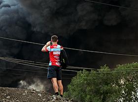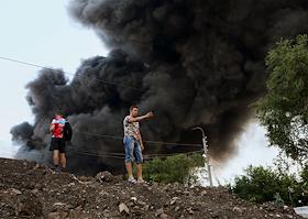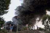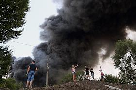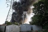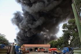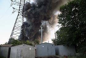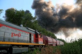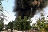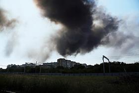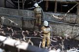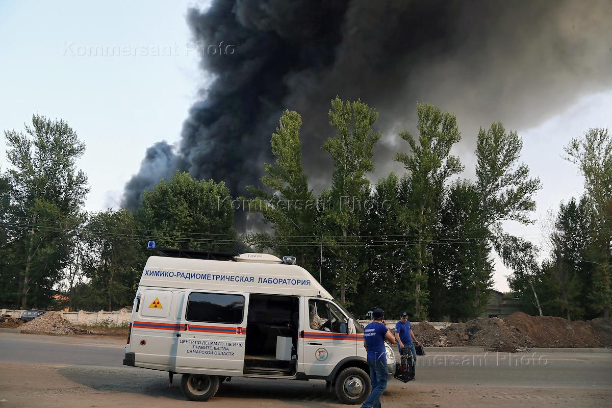 Сотрудники МЧС России во время ликвидации пожара на складе лакокрасочных материалов.