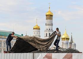 Жанровая фотография. Рабочие во время ремонта Большого Каменного моста.