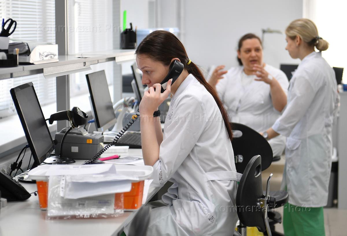 Медицинская лаборатория "Гемотест". Сотрудники лаборатории во время проведения анализов.