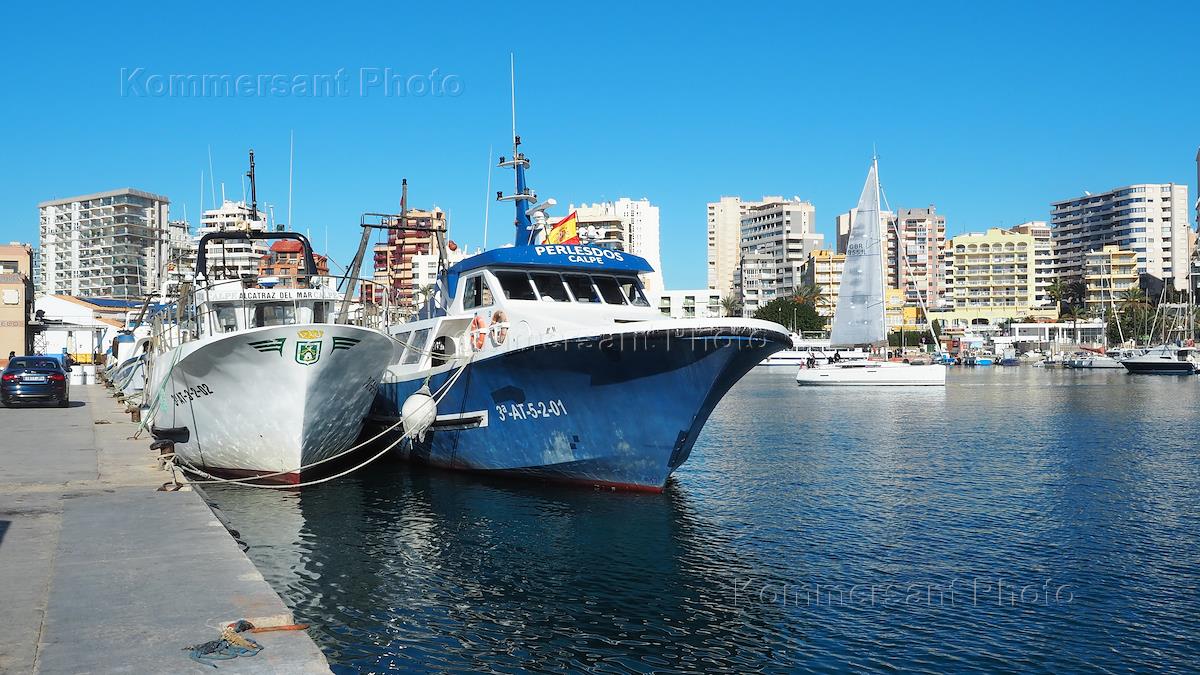 Виды Кальпе. Жанровая фотография. Рыболовные суда у причала в гавани.