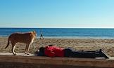 Виды Кальпе. Жанровая фотография. Рыбачьи сети сушатся на молу на фоне группы сидящих девушек.