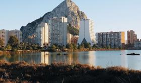 Виды Кальпе. Жанровая фотография. Высотные здания на фоне скалы Ифач.