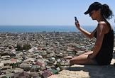Виды Дагестана. Жанровая фотография. Девушка фотографирует дома с высокой точки города.