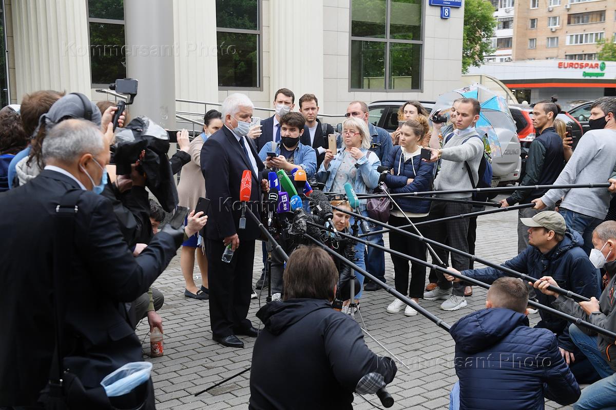 Заседание по делу губернатора Хабаровского края Сергея Фургала, обвиняемого в организации покушений на убийство и убийствахв, в Мосгорсуде. Адвокат Борис Кожемякин (справа) после заседания суда.
