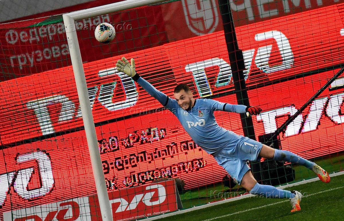 Тинькофф Российская Премьер-Лига (РПЛ). Чемпионат России по футболу 2019/2020. 29-й тур. Матч между командами "Локомотив" (Москва) и ЦСКА (Москва) на стадионе "РЖД Арена". Вратарь команды "Локомотив" Маринато Гильерме во время матча.