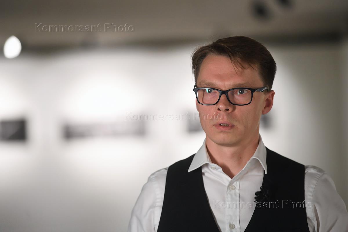 Церемония открытия выставки "Москва. Великая пустота" в Музее Москвы. Фотограф Сергей Пономарев во время церемонии.