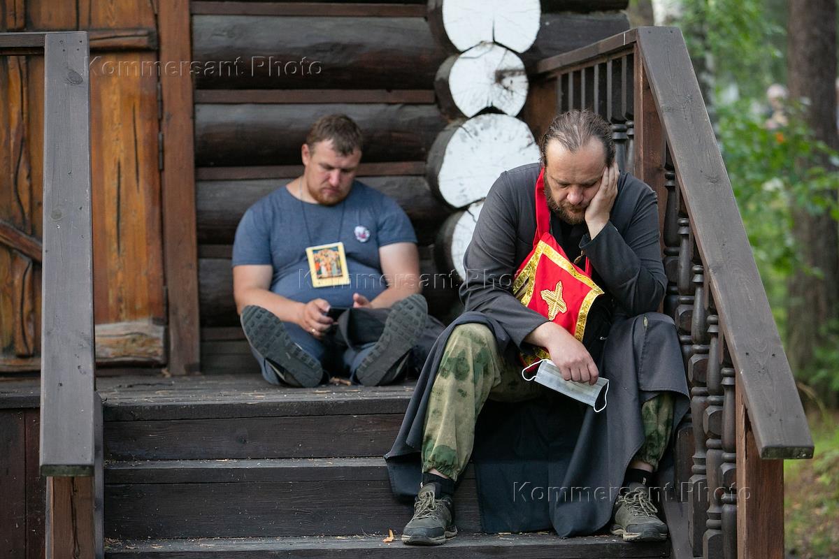 Традиционный Царский крестный ход в ночь с 16 на 17 июля от Храма на Крови от Храма на Крови в Екатеринбурге до монастыря святых Царственных страстотерпцев в урочище Ганина Яма. Паломники на территории монастыря святых Царственных страстотерпцев в урочище Ганина Яма.