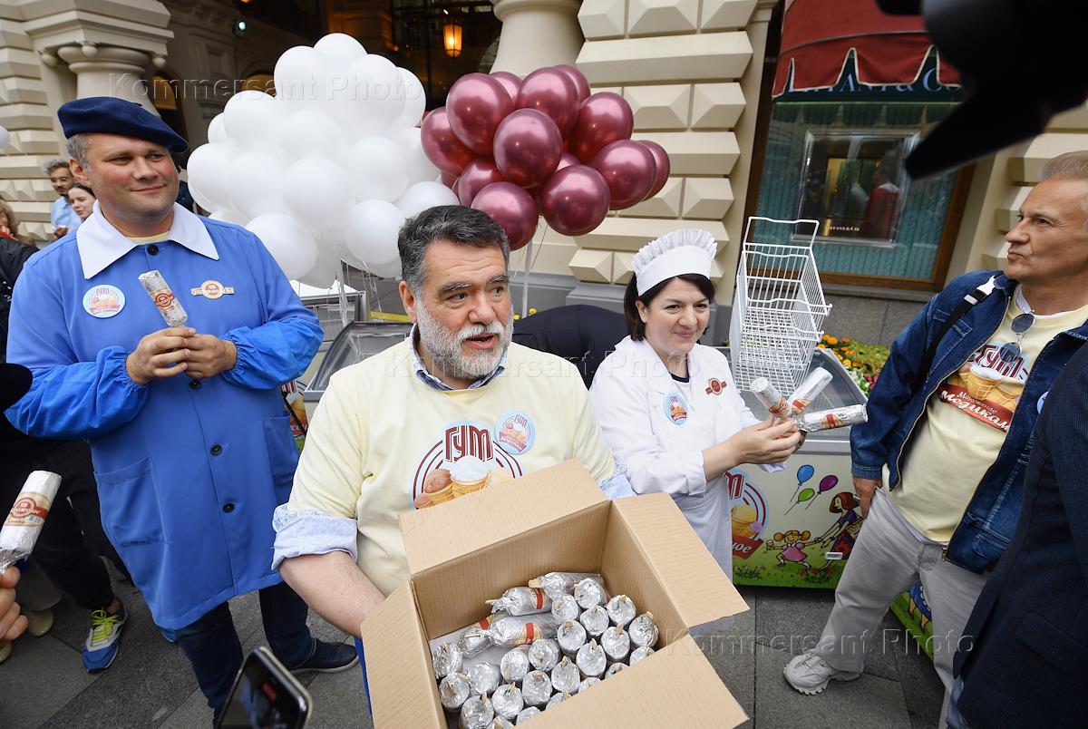 Председатель наблюдательного совета компании Bosco di Ciliegi Михаил Куснирович во время благотворительного мероприятия "ГУМ-мороженое медикам!". Мероприятие, посвященное медицинским работникам, которые боролись против пандемии коронавируса, провели в ГУМе и НИИ скорой помощи имени Н.В.Склифосовского.