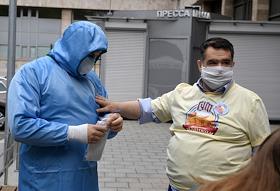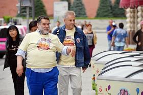 Председатель наблюдательного совета компании Bosco di Ciliegi Михаил Куснирович (справа) во время благотворительного мероприятия "ГУМ-мороженое медикам!". Мероприятие, посвященное медицинским работникам, которые боролись против пандемии коронавируса, провели в ГУМе и НИИ скорой помощи имени Н.В.Склифосовского.