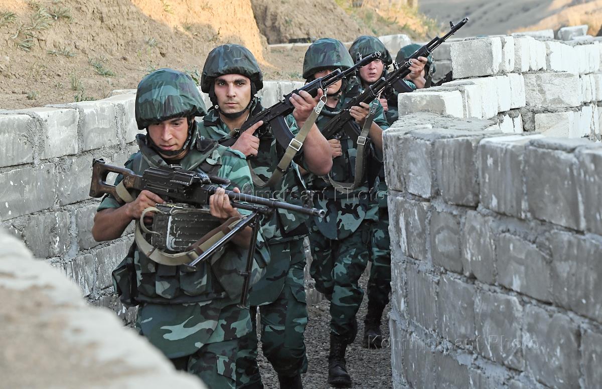 Военные действия на границе Азербайджана и Армении. Военнослужащие во время боевого дежурства.