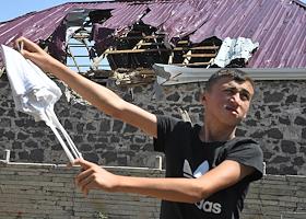 Военные действия на границе Азербайджана и Армении. Последствия обстрела жилого дома.