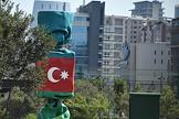 Виды города Хачмаз. Арка на въезде в город и памятник герою народного эпоса Кероглу.