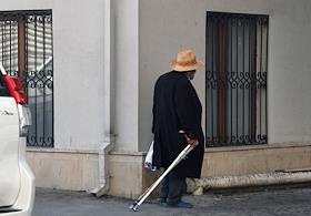 Виды Азербайджана. Пожилой мужчина на улице города.