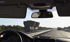 Виды Азербайджана. Жанровая фотография. Грузовой автомобиль перевозит сено.
