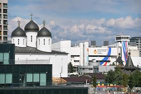 Парк "Ходынское поле". Жанровая фотография. Православный храм. Здание Центрального спортивного клуба армии (ЦСКА).