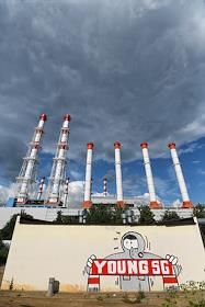 Парк "Ходынское поле". Жанровая фотография. Трубы тепловой станции. Граффити на стене.