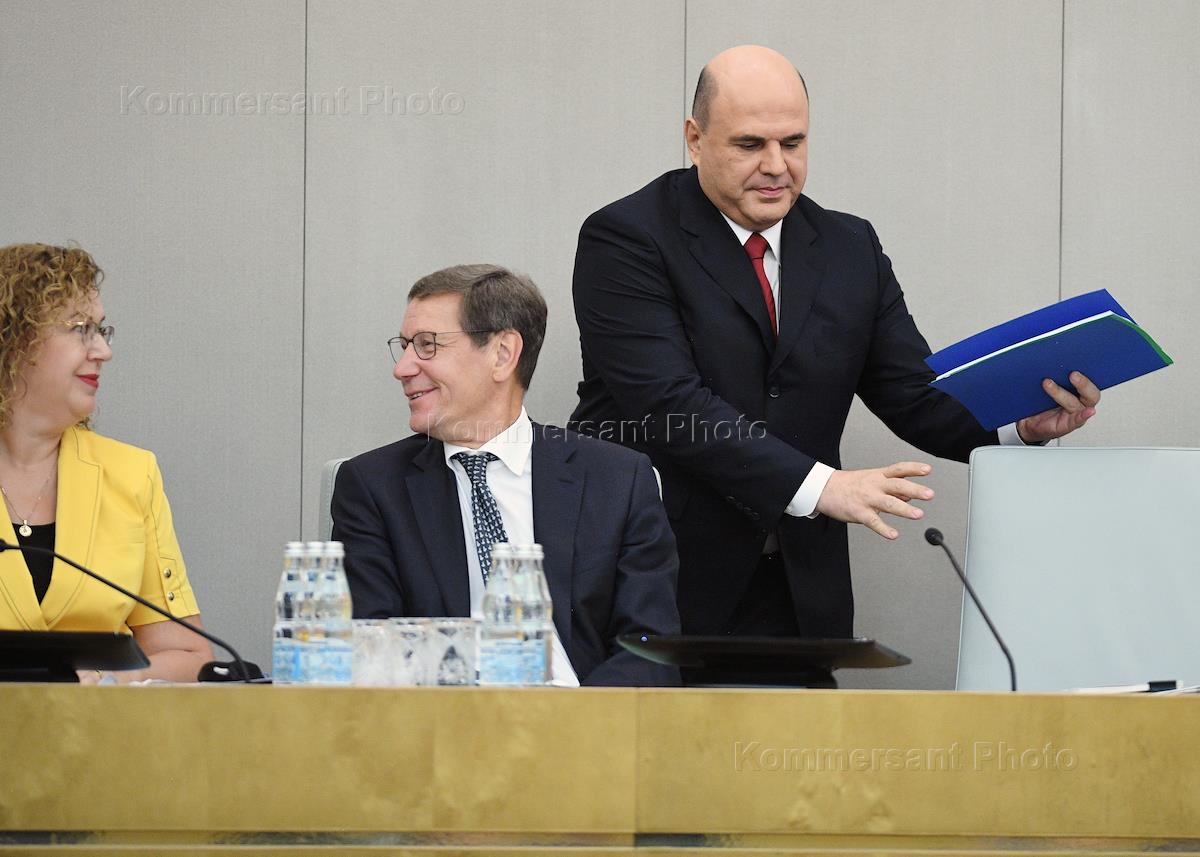 Пленарное заседание Государственной думы (ГД) России. Отчет о деятельности Правительства России за 2019 год. Председатель Правительства России Михаил Мишустин (в центре) во время заседания.