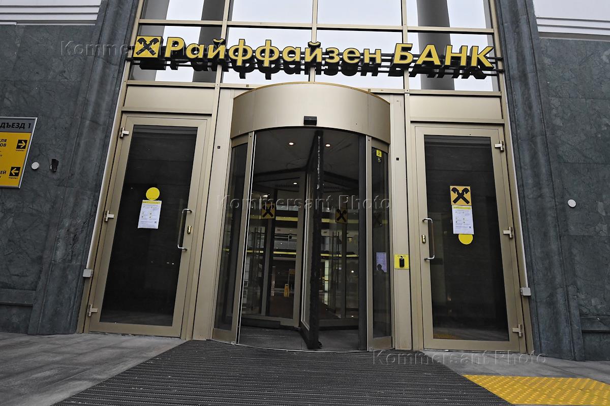 Work of Raiffeisen Bank branch on 28 Smolenskaya-Sennaya street.