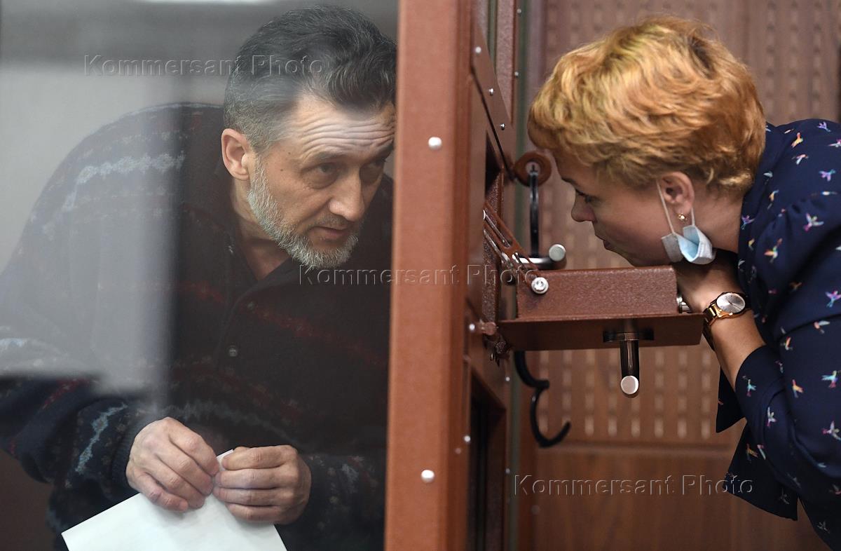 Председатель Московской коллегии адвокатов "Межрегион" Сергей Юрьев (слева), обвиняемый в хищении одного миллиарда рублей, во время заседания Мещанского районного суда.
