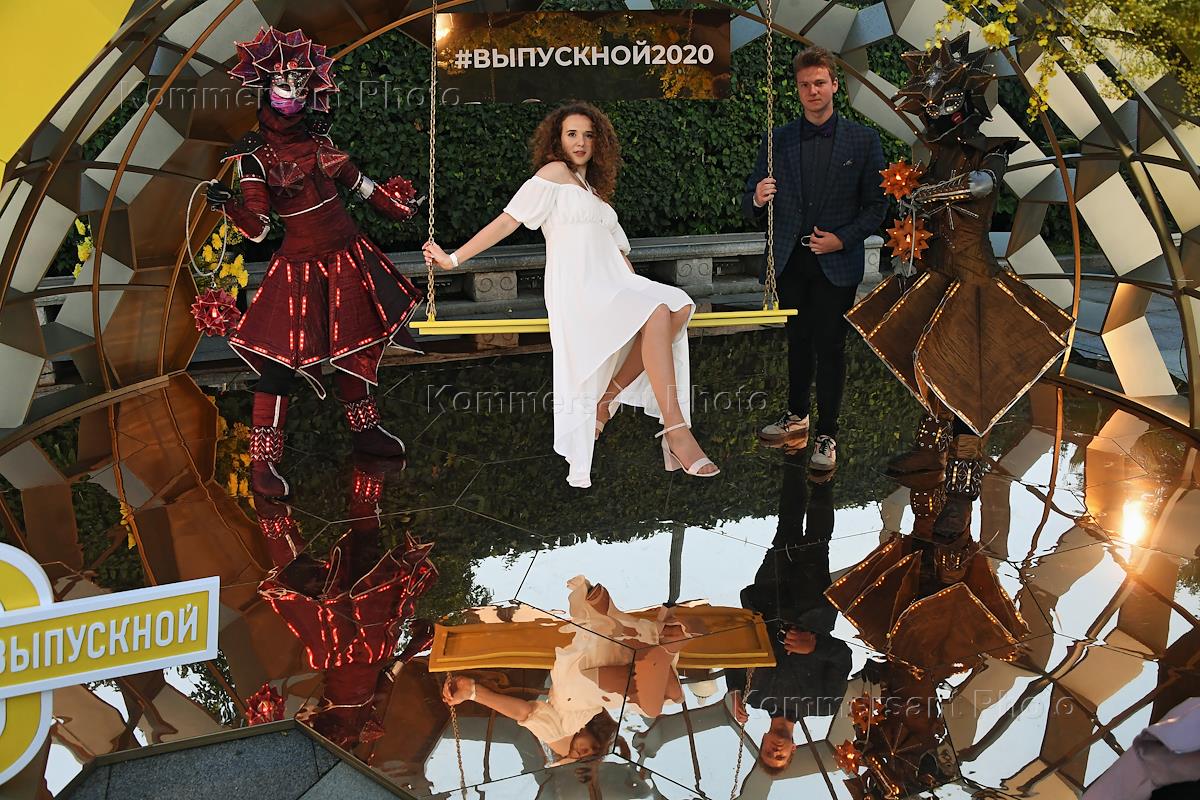 Moscow Prom 2020 in the Gorky Central Park of Culture and Leisure. Due to the coronavirus pandemic the School Prom was postponed to July 24. Artists perform during the Prom.