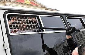 Opposition Organizing Committee deliver demands for the Office of the Prosecutor General of Russia to end repressive pressure against opposition representatives, release political prisoners, check the legality of high-profile criminal, administrative and civil cases and lift bans on public evens. Detained protesters are seen in the police truck.