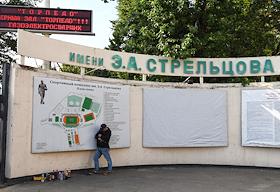 Церемония прощания со стадионом "Торпедо" имени Эдуарда Стрельцова перед сносом и постройки новой арены. Жанровая фотография. Жанровая фотография. Старая щитовая стадиона.